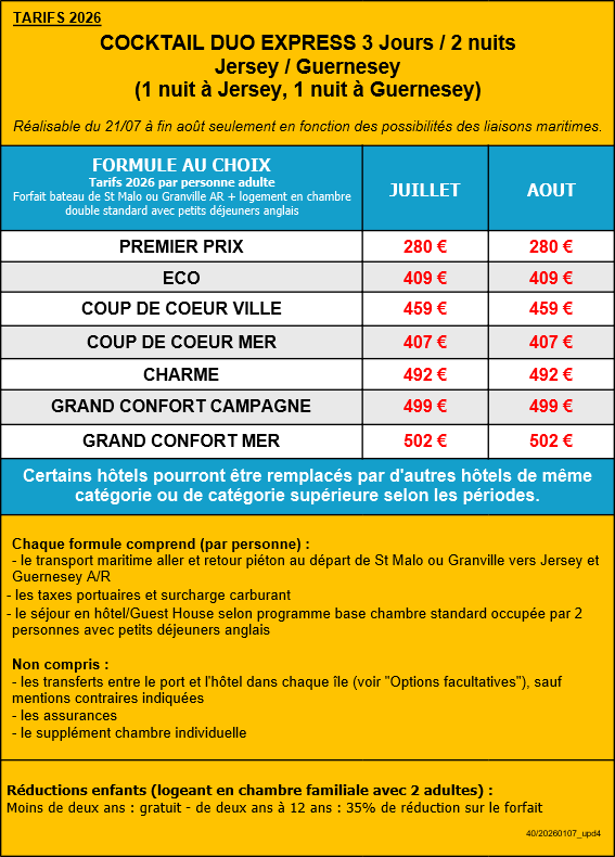 - Cocktail Duo Express – Guernesey/Jersey (3j/2n)